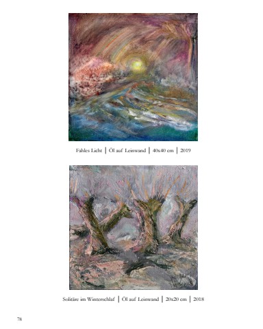 Fahles Licht %u2502 %u00d6l auf Leinwand %u2502 40x40 cm %u2502 2019Solit%u00e4re im Winterschlaf %u2502 %u00d6l auf Leinwand %u2502 20x20 cm %u2502 201878